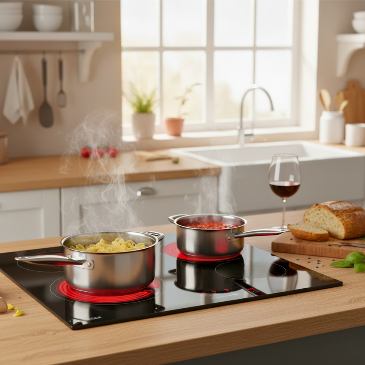 Perfecta para los imprevistos del día a día. Si necesita interrumpir la cocción, active la función Stop & Go: todas las zonas se apagan temporalmente y, con un simple toque, recuperan la potencia anterior sin perder el punto de la receta.