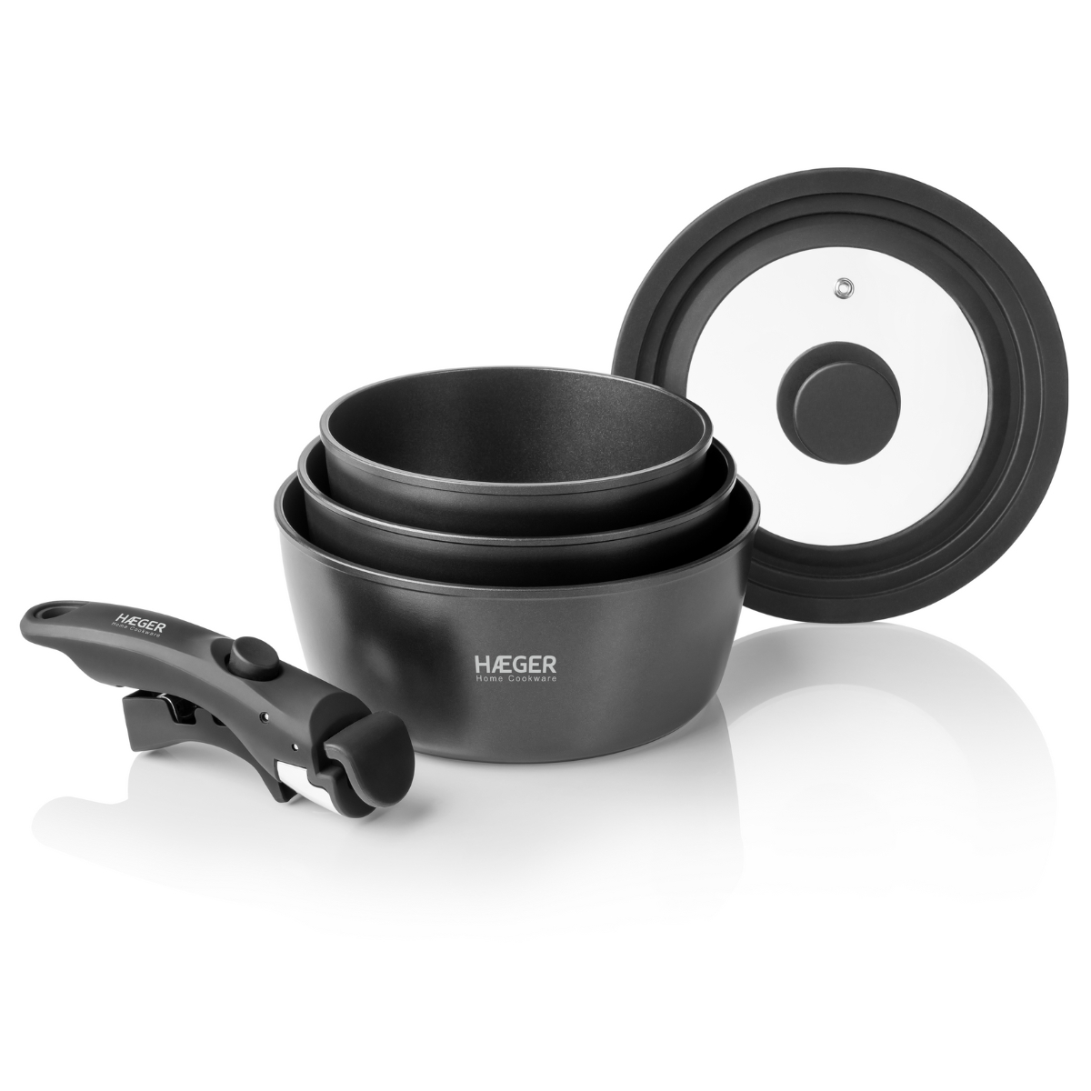 Frigideiras com Pega Amovível HAEGER Easy Fit Pans – 3 Peças, Pega Amovível, Antiaderente Suíço