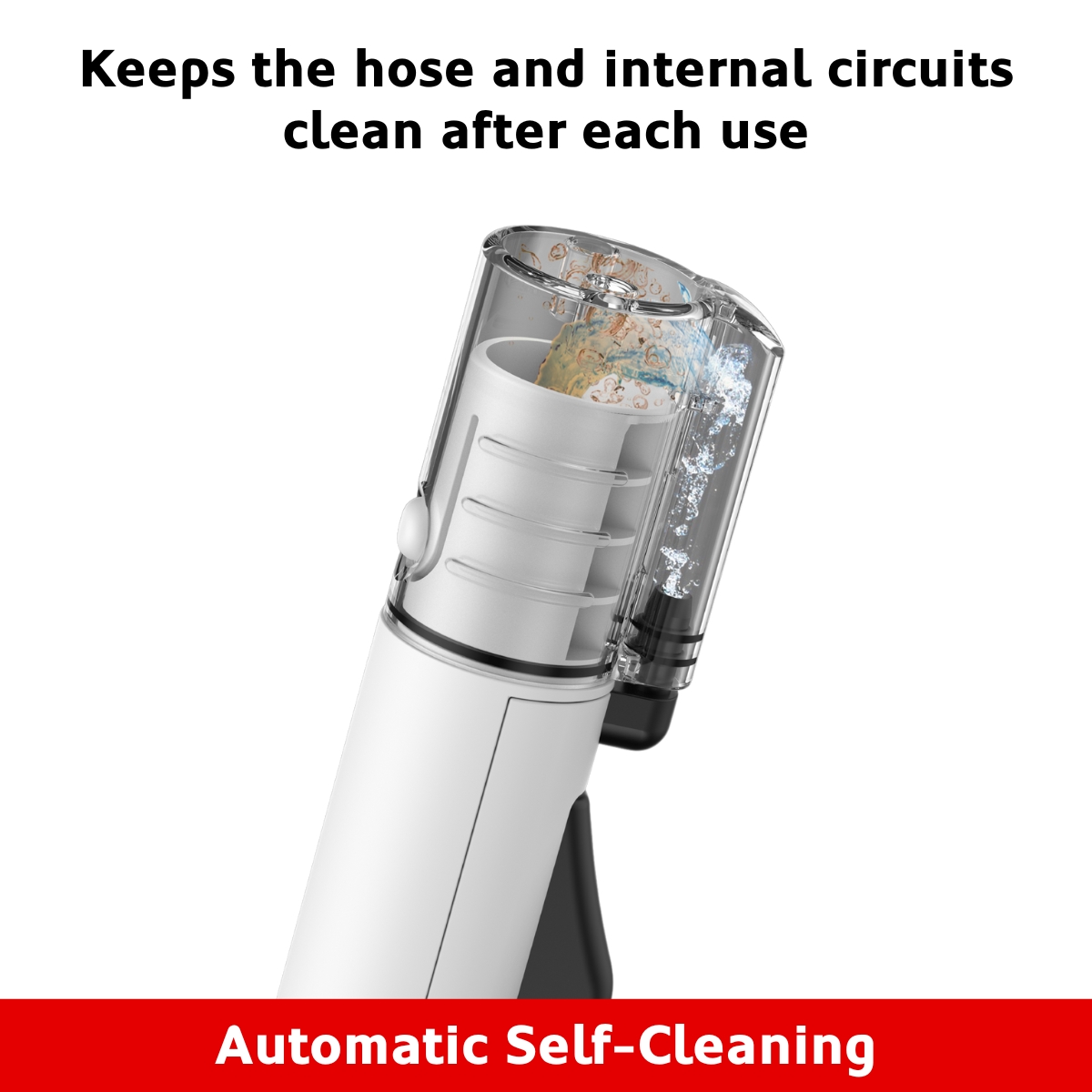 Após a utilização, o sistema limpa automaticamente a mangueira e o circuito interno, prolongando a durabilidade do equipamento e evitando odores.